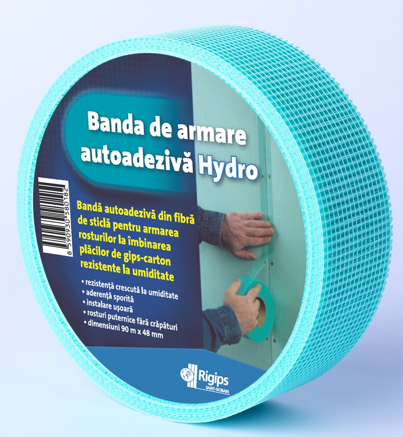 Banda de armare autoadeziva realizata din fibra de sticla, de culoare verde, utilizata la inchiderea rosturilor dintre placile de gips carton, recomandata pentru folosirea in spatii cu umiditate ridicata.