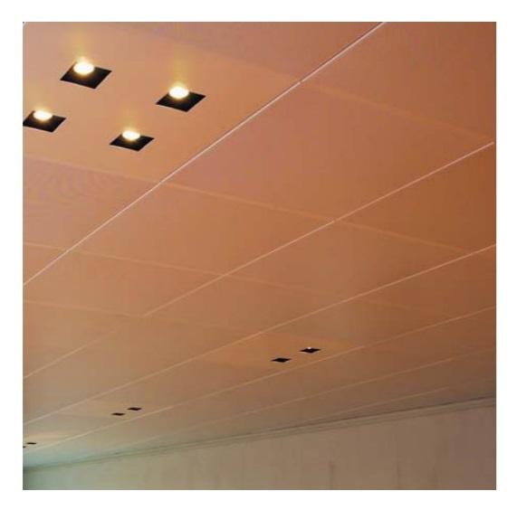 Tavan casetat metalic cu structura ascunsa format din panouri de 600x600 mm care se montateaza prin clipsare de structura de sustinere.