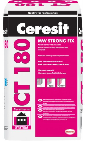 Ceresit CT 180 se utilizeaza la fixarea placilor de vata minerala in cadrul acestui sistem, la termoizolarea cladirilor nou construite, precum si a cladirilor ce urmeaza a fi izolate termic.